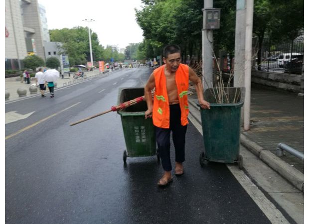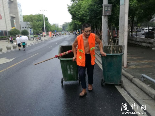 随州网讯 连续高温,酷暑难耐,随城环卫工人依然坚守在清扫一线。(段春善 摄)