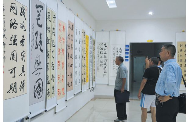 随州网讯 日前,广水市举办书法展,展出书法作品80多幅,庆祝广水建市三十周年。(通讯员 程晓斌摄)