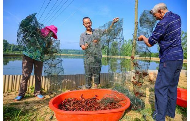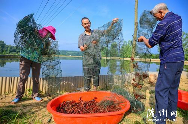 随州网讯 曾都区洛阳镇发展小龙虾养殖业助农致富。图为黄金堂村虾农正在打捞小龙虾。(本报记者 李文军通讯员 胡晓奎摄)
