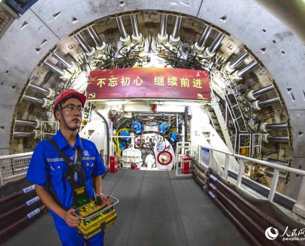 人民网苏州8月21日电(记者 史家民)8月21日上午9点,随着巨大的“卓越号”盾构机刀盘破土而出,潜在长江深处的一条长5468.5米的“蛟龙”,匍匐前行近400个日夜后惊艳亮相。“蛟龙出水”标志着由中铁十四局承建的全球首条特高压穿越长江综合管廊隧道贯通。
