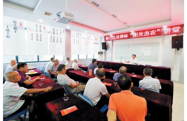 随州网讯 随岳高速公路管理处柳林管理所多年来践行“阳光相随、大爱如岳”的随岳精神,与驻地随县柳林镇团结村结对共建,开展精准扶贫、志愿者服务、关爱留守儿童等活动。图为8月27日,柳林管理所举办“阳光惠农”讲堂,宣讲惠农政策。(本报记者 徐 斌摄)