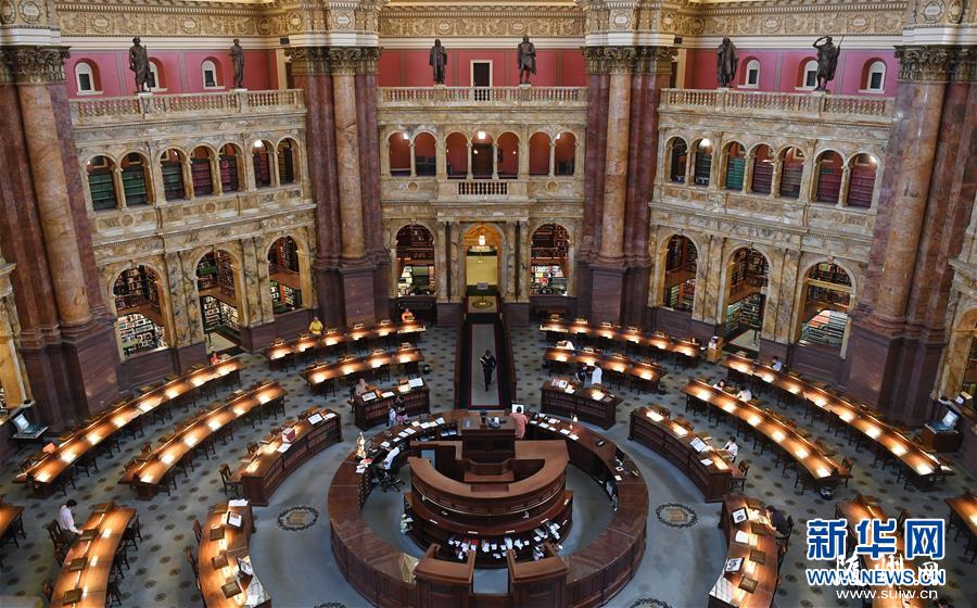 这是810日在美国华盛顿国会图书馆拍摄的主阅览室。美国国会图书馆始创于1800年,是美国历史最悠久的联邦文化机构,其馆藏量在全球图书馆中名列前茅,藏有图书、手稿、照片、地图等藏品约1.67亿件。 新华社记者刘杰摄