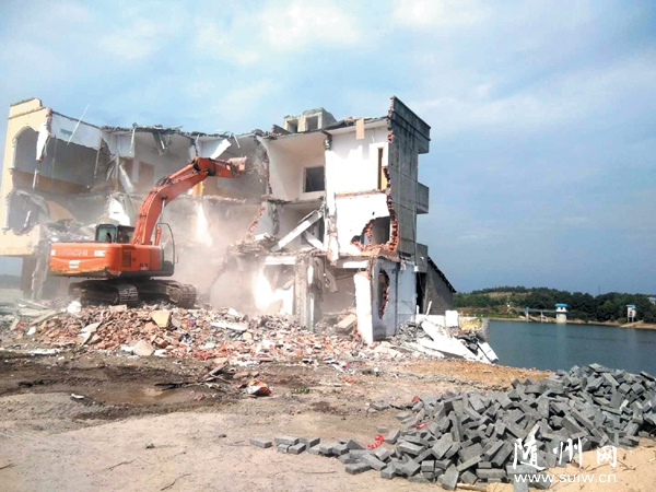 随州网讯 9月12日,随县对厉山镇封江口水库东南岸边临水的13户居民房屋实行征收拆除,以杜绝周边居民生活污水对水库水质的影响,守护好全市人民的大水缸,让市民喝上安全水、放心水、优质水。据悉,拆除后将进行防护墙(网)建设和生态修复等,对封江口饮用水水源地实行封闭式管理。图为拆除现场。(本报记者 陈云 摄)