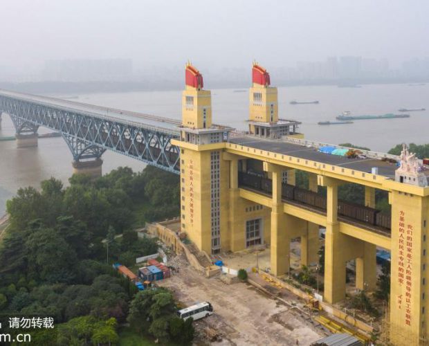 日前,正在进行维修改造工程的南京长江大桥公路桥桥面开始摊铺沥青,桥头堡及雕塑等处的围挡已拆除。南京长江大桥建成于1968年,公路桥于2016年10月28日开始封闭维修,预计2018年年底前完成维修改造,恢复通车。苏阳/人民图片