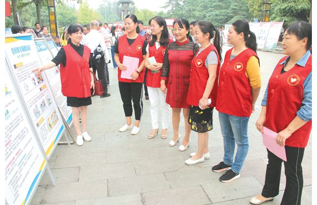 随州网讯 9月19日,曾都区委宣传部、区科协、教育局、农业局等部门在神农公园启动科普日主题活动。据介绍,2018年全国科普日活动以“创新引领时代,智慧点亮生活”为主题。图为社区干部为居民讲解科普知识。(通讯员 石守京摄)