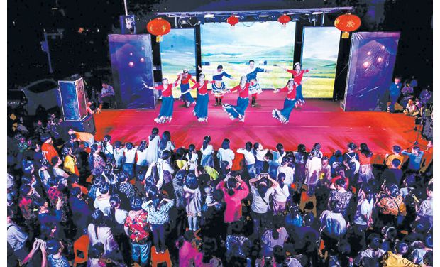 ,居民积极参与演出,尽情歌舞,绽放风采。据悉,碧桂园小区居民已经连续6年自办中秋晚会。(本报记者 李文军摄)