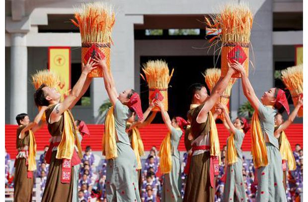 9月23日,首届“中国农民丰收节”湖北省主会场庆祝活动在农耕之祖炎帝神农故里随县举行。人们用精彩的演出和丰厚的硕果展示农业丰收的喜悦,致敬农民,礼赞丰收。
