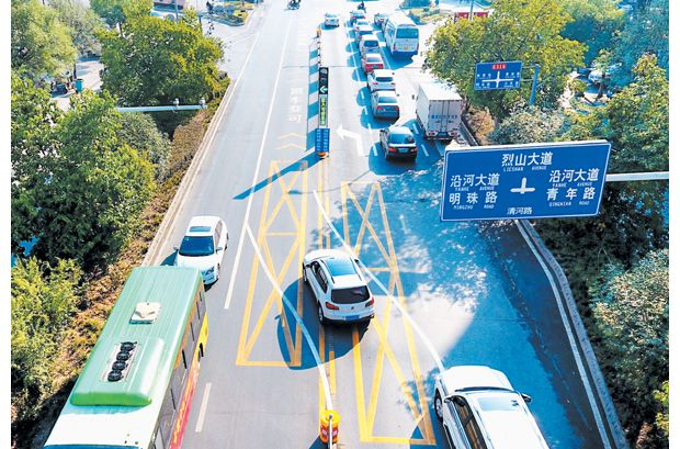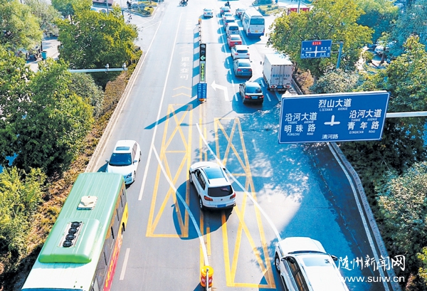 随州新闻网讯 为缓解交通压力,随州城区清河路党校路口二桥进城方向首次开通可变车道。这种可变车道主要设置在交叉路口,可依据不同时段车辆流量流向的特点,对流向进行灵活调控,变换车道的行驶方向,缓解交通压力。(本报记者 徐斌摄)