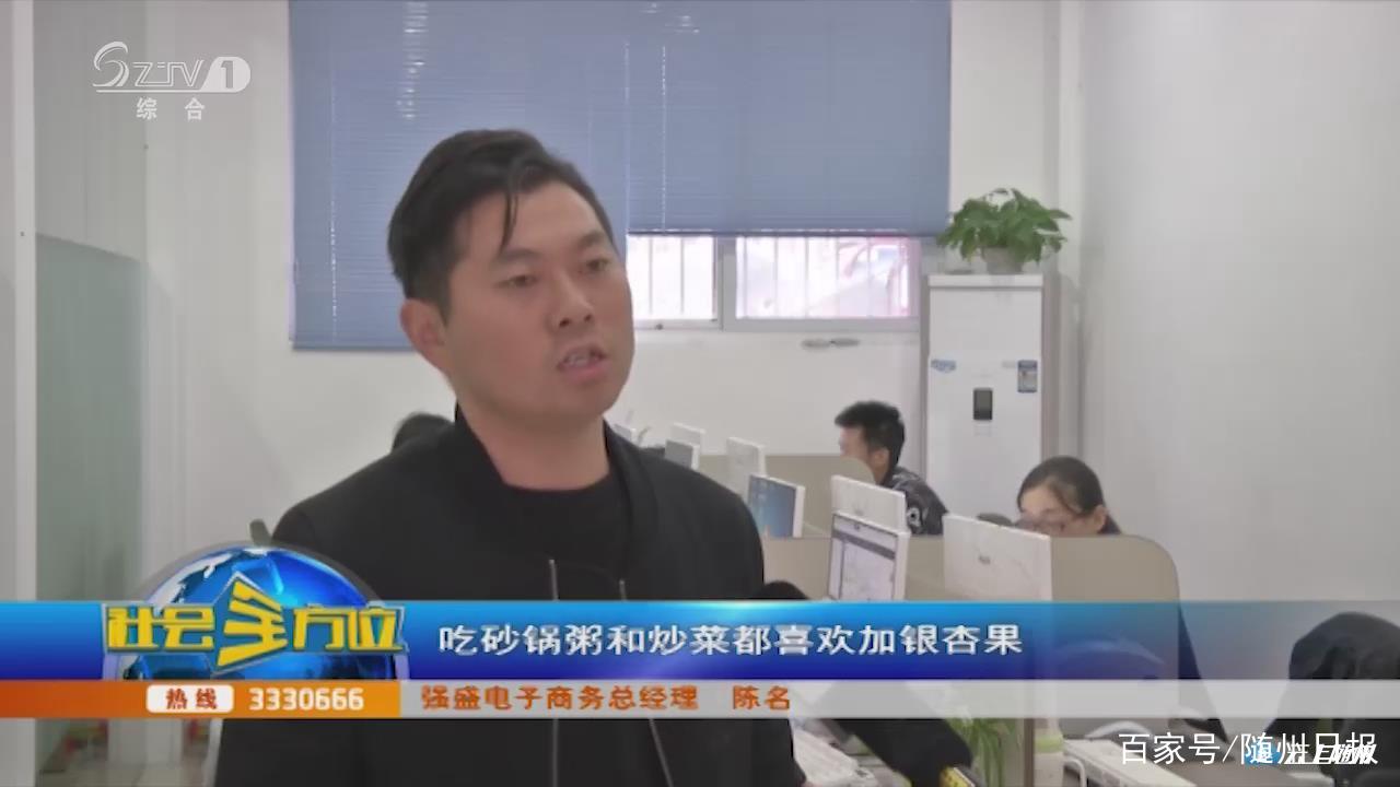 【采访】强盛电子商务总经理 陈名:以前在广东那边工作,看到潮汕人,江浙那边的人吃砂锅粥和炒菜,都喜欢加银杏果,而且银杏果的用量也非常大,包括酒店餐饮方面的消费群体非常庞大,后来我们做了这一行之后就在想,随州千年银杏谷产量也很大,而且出产的银杏谷的品质也比较好,我就想把它放在平台上推广效果怎么样,结果推广的效果还是挺不错的,销量也非常高。