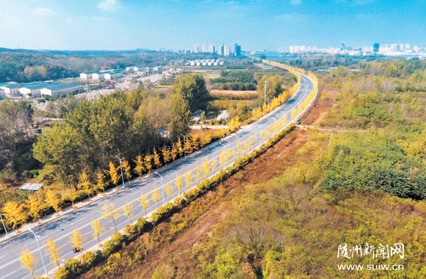 随州新闻网讯  深秋时节,随城白云大道南段两旁的银杏树叶开始变黄,将道路装点成一条“黄金大道”。(随州日报全媒体记者 徐斌摄)