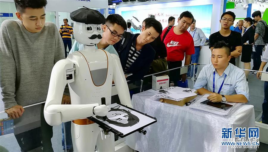 2017年1116,机器人在为一名参观者绘制人脸图像。当日,在深圳举行的第十九届中国国际高新技术成果交易会上,深圳市智能机器人研究院展出的一款智能识别机器人,现场免费为观众绘制人脸图像。新华社记者 周科