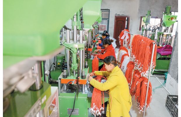 随州新闻网讯 从随县新街镇河源店村走出去的企业家江恒帆今年回乡创业。所创办的三源电子公司,首批生产线可为国内手机企业月供200万条数据线,同时为当地部分乡亲提供了就业岗位。(随州日报全媒体记者李文军、通讯员韩铁流、吕雄辉摄)
