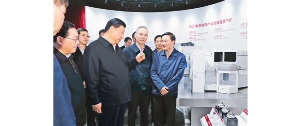 张江科学城作为上海科创中心核心区和国家级科技高地,集聚了一批大科学设施、科学平台和一流创新型院所。在展示厅,习近平听取科学城发展历程及规划建设情况介绍,参观了大科学设施、集成电路、航空航天、生物医药等展区。习近平同在场的科技工作者亲切交谈,他强调,科学技术从来没有像今天这样深刻影响着国家前途命运,从来没有像今天这样深刻影响着人民生活福祉。在实现中华民族伟大复兴的关键时刻,要增强科技创新的紧迫感和使命感,把科技创新摆到更加重要位置,踢好“临门一脚”,让科技创新在实施创新驱动发展战略、加快新旧动能转换中发挥重大作用。要认真落实党中央关于科技创新的战略部署和政策措施,加强基础研究和应用基础研究,提升原始创新能力,注重发挥企业主体作用,加强知识产权保护,尊重创新人才,释放创新活力,培育壮大新兴产业和创新型企业,加快科技成果转化,提升创新体系整体效能。要以全球视野、国际标准推进张江综合性国家科学中心建设,集聚建设国际先进水平的实验室、科研院所、研发机构、研究型大学,加快建立世界一流的重大科技基础设施集群。