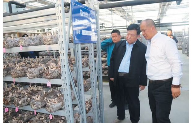 随州新闻网讯 中国工程院院士、菌物学泰斗、湖北省香菇产业技术研究院首席科学家李玉(前左)日前来到裕国股份随县香菇产业园,指导香菇新品种、新技术研究工作。(随州日报通讯员 于萱摄)