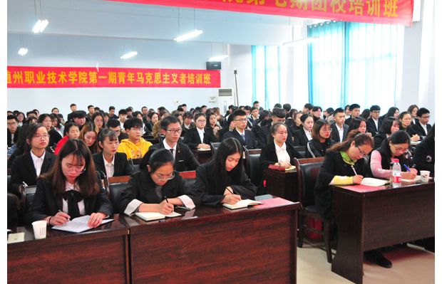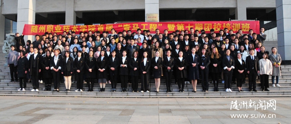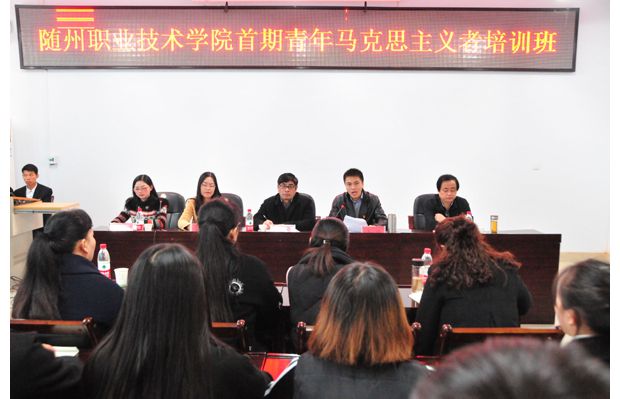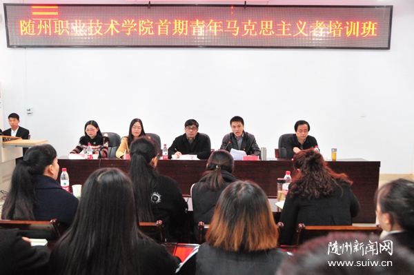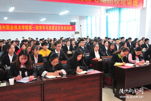 随州新闻网讯 (通讯员 程蓉、孙红霞)11月26日,随州职业技术学院举行首期“青年马克思主义者培养工程”(简称“青马工程”)暨第七期团校培训班开班典礼。共青团随州市委书记姜皓、学校部部长李莉,随州职业技术学院党委委员、副院长童加斌,学院党委组织部部长梁学军、学院团委副书记程蓉,各二级学院团总支书记及部分团干部、首届“青马工程”学员参加了开班典礼。