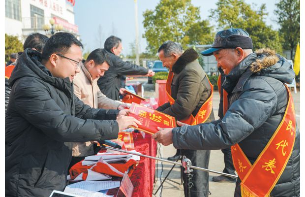 随州新闻网讯 昨日,随县环潭镇柏树湾村举行2018年度乡风文明颁奖大会,向8个“十星级文明户”,4位优秀共产党员、4名优秀村民代表颁发奖牌、奖金及化肥等奖品,选树先进典型,引领文明乡风。(随州日报全媒体记者 李文军摄)