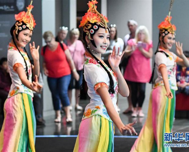 12月15日,在新西兰首都惠灵顿国家博物馆,来自海南舞蹈团的演员参加“秦始皇兵马俑:永恒的守卫”展览首个开放日热场演出。