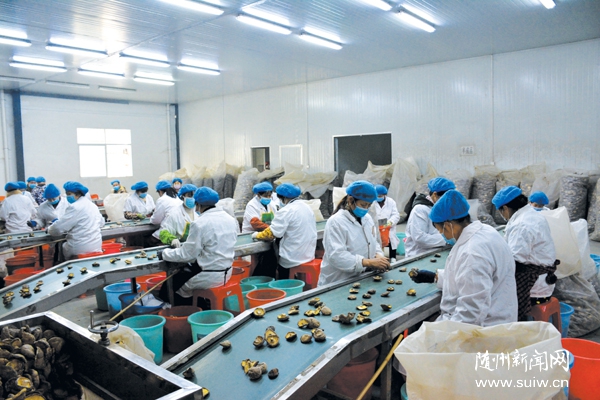 随州新闻网讯 随州宝珠峰食品有限公司的“汪东风”香菇系列产品远销到马来西亚、新加坡、美国等10多个国家和地区。公司在当地建立原材料基地10个,带动3000余农户,9600多人从事香菇种植,并让当地群众150多人实现家门口就业。图为该公司生产车间一角。 (随州日报特约记者 程鹏摄)