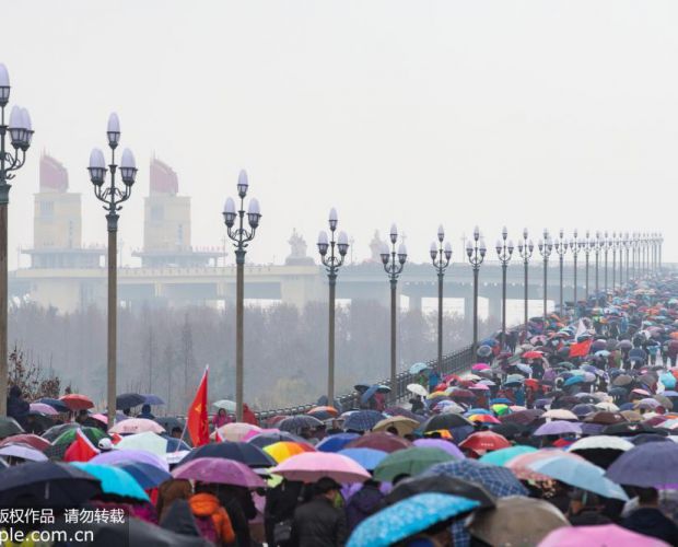 2018年12月26日,南京市民冒雨参观南京长江大桥。从2018年12月26日起,全封闭维修改造后的南京长江大桥向公众开放三天。