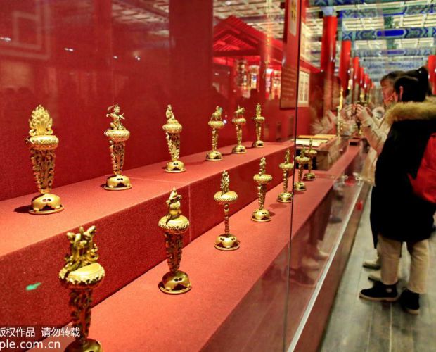 2019年1月6日,北京故宫博物院举办“贺岁迎祥——紫禁城里过大年”展览。本次故宫将破纪录地展出近900件(套)文物,为观众呈现一个充满年味的紫禁城。
