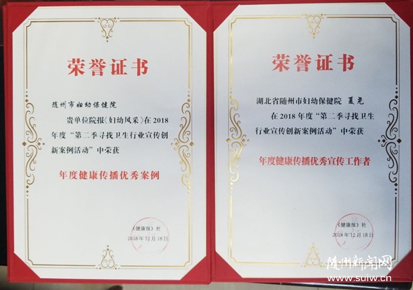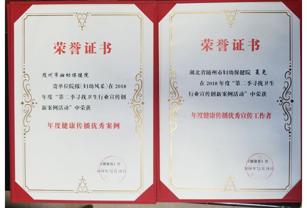 此次在全国医疗界最高宣传平台之一——健康报社主办的活动中荣获奖励,是主办方和评委们对随州市妇幼保健院宣传工作的肯定和鞭策。