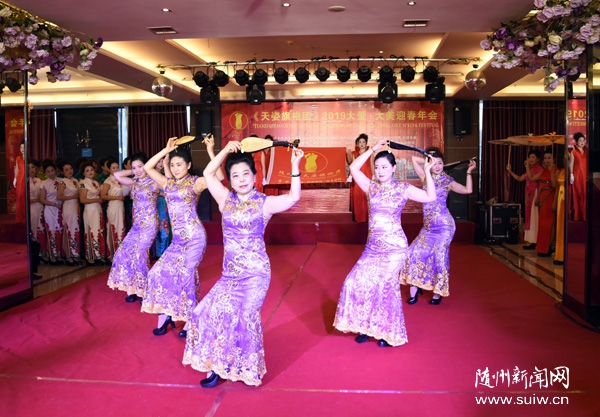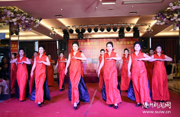 迎春年会上,随州老年大学、曾都区群艺馆等有关单位的领导先后讲话,天姿旗袍团团长致辞,天姿几个旗袍队队长先后上台作交流发言。