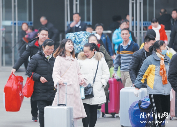 随州新闻网讯 春节临近,随州火车站迎来返乡客流小高峰。图为1月28日,随州火车站出站口的客流。(随州日报全媒体记者 徐斌摄)