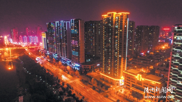 随州新闻网讯  近年来,我市将城市亮化与绿化、美化等一体推进,着力实施夜景亮化提升工程,让随城夜景越来越美丽。图为随城神农大道滨湖湾一带夜景。(随州日报全媒体记者 李文军摄)