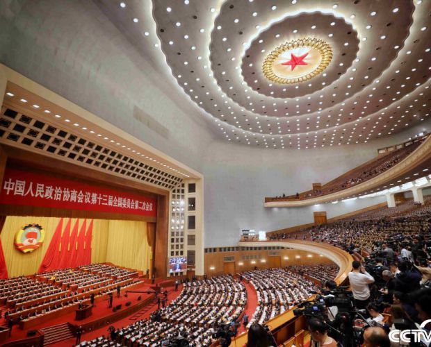 大会首先审议通过了政协第十三届全国委员会第二次会议议程。