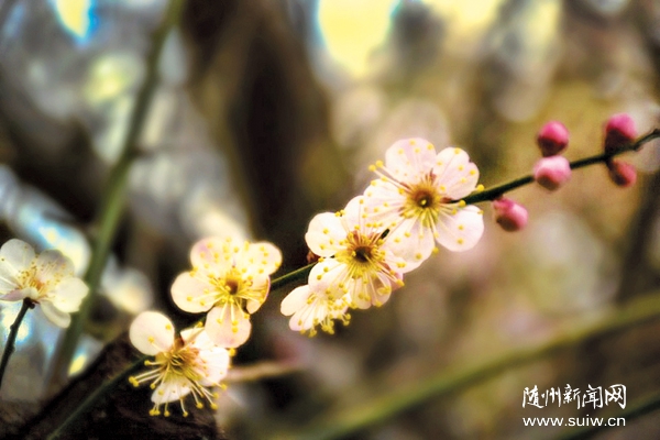随州新闻网讯 近期,气温回升,随城白云公园梅花在连绵阴雨中静静绽放,预示着春天的到来。(随州日报通讯员 亮哥摄)