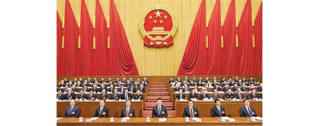 大会主席团常务主席、执行主席栗战书主持大会。大会主席团常务主席、执行主席王晨、曹建明、张春贤、沈跃跃、吉炳轩、艾力更·依明巴海、万鄂湘、陈竺、王东明、白玛赤林、丁仲礼、郝明金、蔡达峰、武维华、杨振武在主席台执行主席席就座。