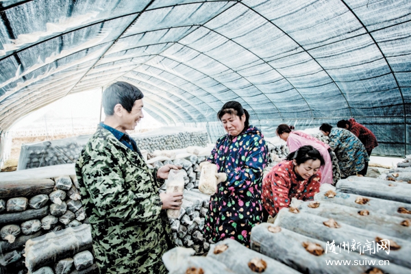 随州新闻网讯  曾都区洛阳镇邱畈村香菇种植专业合作社抓住春菇生产大好时机,抢先为贫困户生产袋料香菇棒。(随州日报通讯员 靳云山摄)