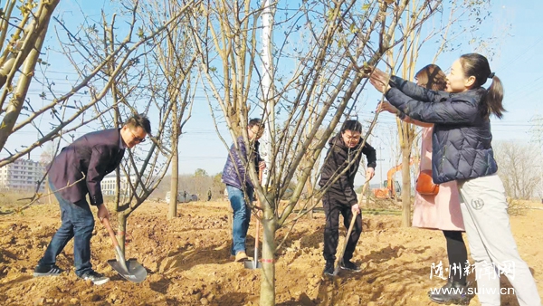 3月12日,植树节。市城投公司联合随州绿地置业有限公司组织70余名员工来到这里,大家挥锹铲土共植“友谊林”,为生态绿城建设助力。秀美的涢水河畔,增添了一道新绿。