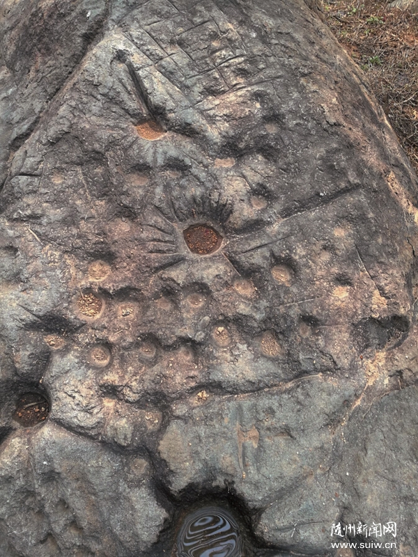 这也就意谓着,随县境内桐柏山岩画中的大多数作品,正是神农时代的先民们所创作。专家们指出,这些岩画的发现,填补了中国中原地区没有人面像岩画的空白,是非常重要的历史遗迹,必须要加以保护。对于这些岩画的解读,有可能是刻石记事,也有可能是天文星象等等。而头戴王冠的人像,则是太阳神的象征。太阳神像被放置在山上,女阴图案集中出现在溪水旁,说明先民当时已有“以山为阳,以水为阴”的观念。