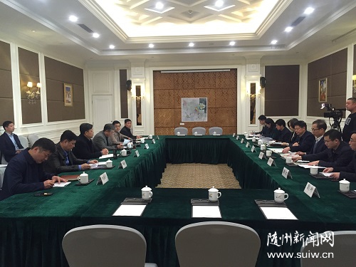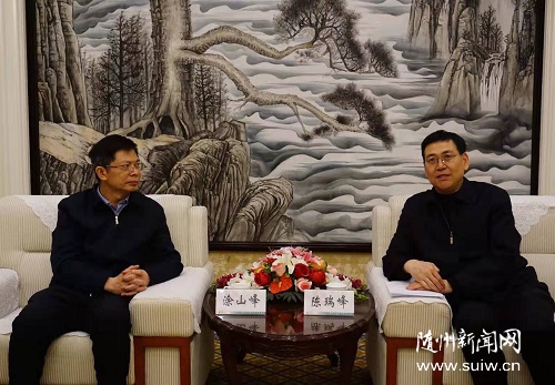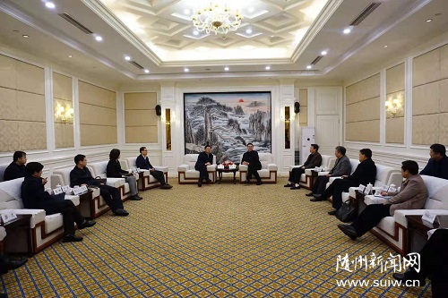 陈瑞峰对涂山峰一行的到来表示欢迎,并介绍了随州经济社会发展情况。他说,省委省政府提出“一芯驱动、两带支撑、三区协同”区域和产业战略布局,把随州纳入汉孝随襄十制造业高质量发展带、鄂西绿色发展示范区,进一步强化了随州在全省发展的战略定位,赋予了随州新的历史使命。对接全省战略布局,随州正着力打造产业新城、文旅名城、生态绿城,建设品质随州,推动高质量发展,特别是依托专汽产业优势打造应急产业基地,依托风机产业优势打造地铁装备产业基地,依托香菇品牌优势打造香菇产业基地,依托曾随文化资源打造编钟文化产业基地,这必将进一步彰显产业特色、延长产业链条,促进产业做大做强,推动我市在创建经济转型升级和创新驱动示范城市中上水平上台阶。他强调,当前,随州面临产业发展的双重压力,既要解决“有没有”的问题,又要解决“好不好”的问题。随州要把招商引资作为一号工程,坚持招商与安商双轮驱动,全力以赴支持港航集团来随投资兴业,我们将全力做好服务,争取更多项目落地,实现互利双赢。