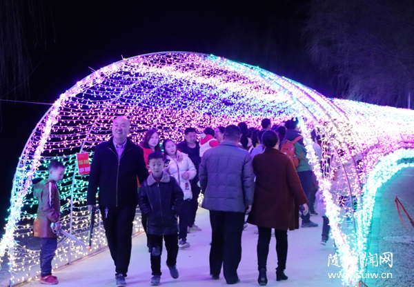 随州新闻网讯  3月15日,在广水徐家河水泊梁山景区,投资38万元的灯光秀吸引了众多游客,丰富了群众文化生活。据不完全统计,15日和16日共吸引游客近万人,灯光秀将持续至4月7日。 (随州日报全媒体记者 冯家园摄)
