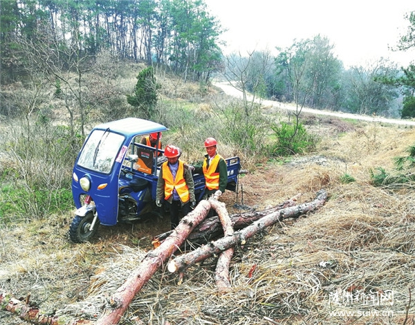 随州新闻网讯   松材线虫病疫情发生后,我市13个乡镇开展疫木清理处置工作,现已接近尾声。图为曾都区南郊南烟墩村请专业人员清理疫木。(随州日报全媒体记者 冯家园摄)