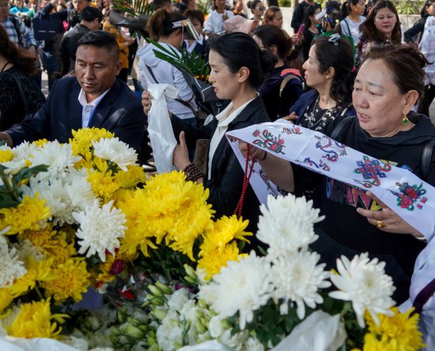 四川省凉山州木里县雅砻江镇立尔村发生森林火灾,27名森林消防队员和3名地方干部群众牺牲。部分牺牲人员遗体于4月2日送抵西昌市殡仪馆,当地群众自发到殡仪馆悼念牺牲的扑火人员。