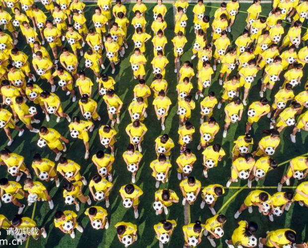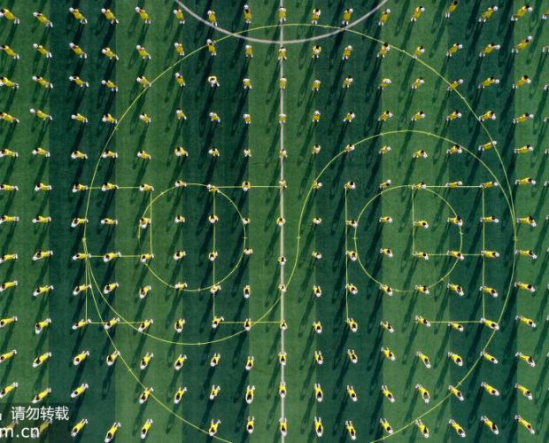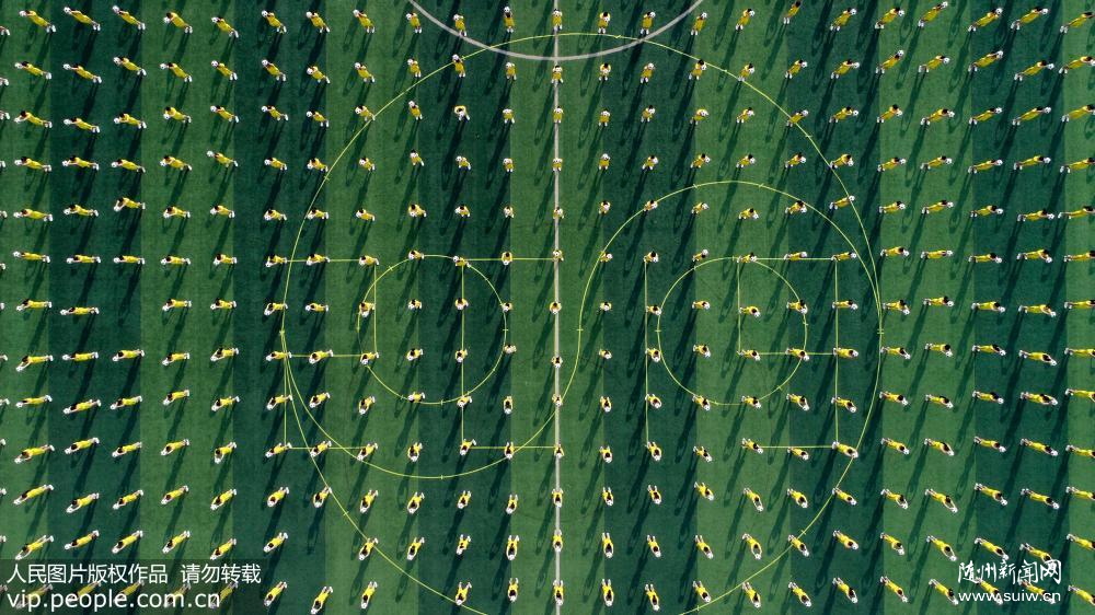 近日,河北唐山遵化市第二中学的500名学生,在校园运动场进行足球操表演。学生们协调的动作、整齐的队列、流动的身影,展现了青春的活力。(刘满仓/人民图片)