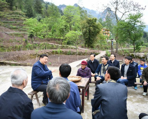 山城四月,春风和煦,山水透绿,一派生机勃勃。4月15日,习近平在中共中央政治局委员、重庆市委书记陈敏尔和市长唐良智陪同下,深入石柱土家族自治县的学校、农村,实地了解脱贫攻坚工作情况。