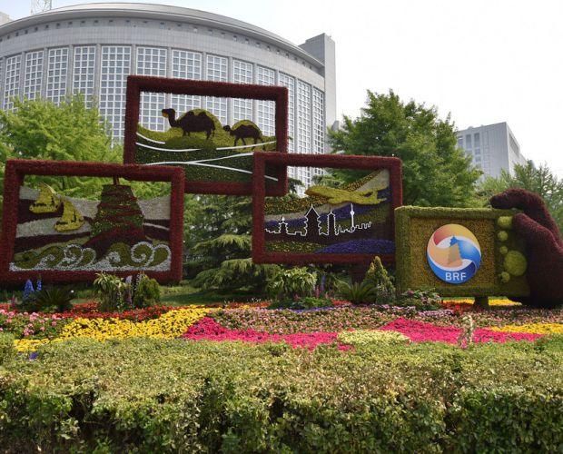人民网北京4月17日电 (记者翁奇羽)第二届“一带一路”国际合作高峰论坛即将在北京召开,位于北京朝阳门桥东南角的一带一路主题花坛笑迎八方宾朋,迎接“一带一路”盛会召开。