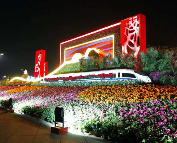 庆五一“蒸蒸日上”主题花坛亮相奥林匹克公园