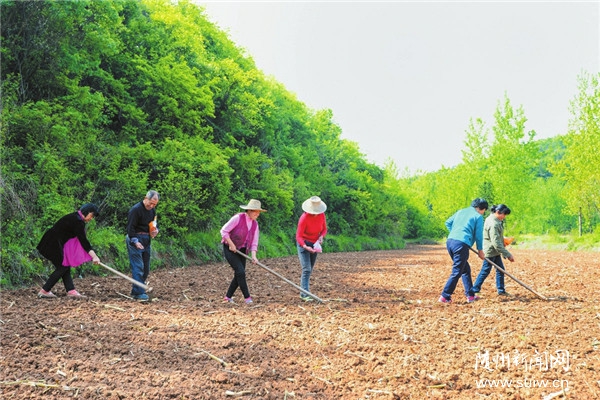 随州日报讯  近日,随县三里岗镇贾家湾村一组村民肖俊安请乡邻帮忙播种玉米,他家10亩旱地今年都种上高产玉米。(随州日报全媒体记者 李文军摄)