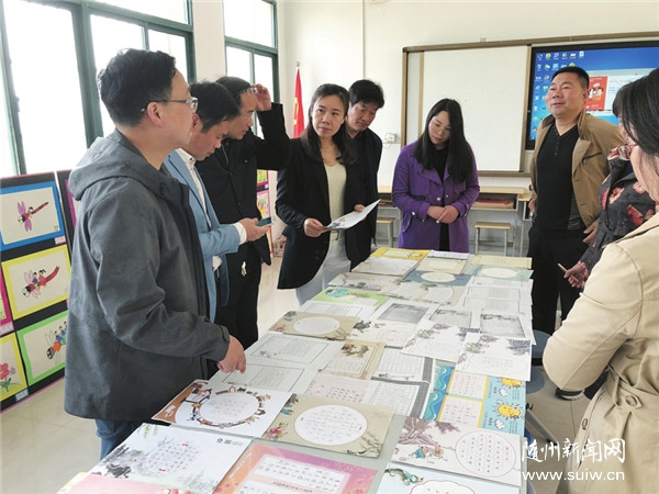 随州日报讯   书法生辉,翰墨飘香。近年来,广水市扎实开展校园书法教学,注重从教学管理实、文化建设浓、书法研究深、成果积淀厚等方面,开展书法传统教育,营造浓厚书法氛围。图为该市小学书法比赛复赛作品选拔现场。(随州日报特约记者 朱青、通讯员 卢辉摄)