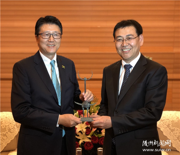 陈瑞峰首先代表市委、市政府对丘伟基一行的到来表示热烈欢迎。他说,随州是国家历史文化名城,炎帝文化、编钟文化享誉国内外;随州是淮河发源地,森林覆盖率49.9%,生态环境良好;随州是中国专用汽车之都、国家应急产业示范基地,产业特色鲜明。当前随州正以习近平新时代中国特色社会主义思想为指导,抢抓“一带一路”等重大机遇,积极融入全省“一芯两带三区”战略布局,着力打造产业新城、文旅名城、生态绿城,聚力建设品质随州。牙买加是最早同中国建交的加勒比国家之一,中牙是“一带一路”建设和产能合作的重要伙伴。真诚希望与包括牙买加在内的世界各国各地区加强交流和往来,深化经贸、文化、旅游等方面的合作。