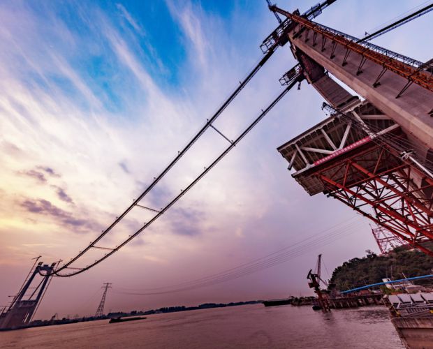 5月10日上午,两根长1934米、重达46吨的主缆索股从连镇铁路五峰山长江特大桥北岸放索区徐徐牵引过江,施工人员将两根主缆索股双双锁定在南锚碇两侧的352号锚杆上,至此,704根主缆索股全部架设完成,标志着大桥建设又向前迈出了坚实的一步,为后续中跨钢桁梁架设和年内全桥贯通奠定了坚实的基础。