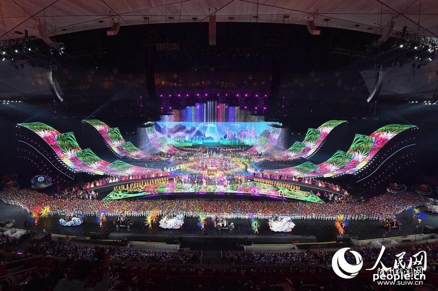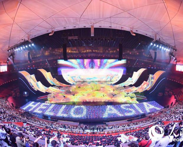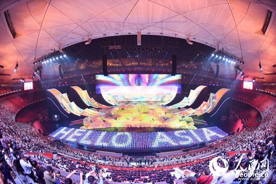 人民网北京5月15日电 今晚,亚洲文化嘉年华活动在北京“鸟巢”举行。