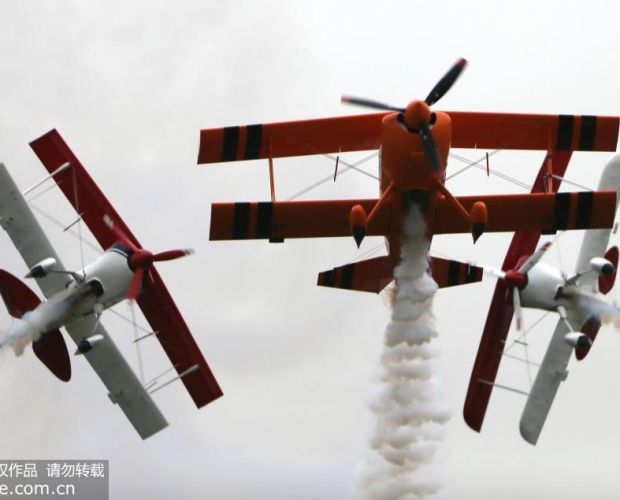 2019年5月20日,在武汉汉南通用航空机场,国际航联世界飞行者大会进入第3天,来自中国和世界各地的飞行者的表演精彩纷呈飞行,吸引了观众和孩子们。周国强/人民图片