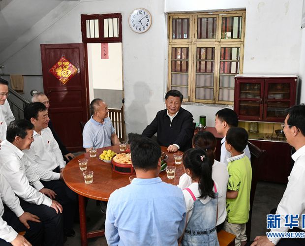 5月20日至22日,中共中央总书记、国家主席、中央军委主席习近平在江西考察,主持召开推动中部地区崛起工作座谈会并发表重要讲话。这是习近平在红军烈士后代、退伍军人孙观发家,同孙观发一家和当地镇、村干部拉家常,详细了解老区人民生产发展和生活改善等情况。 新华社记者 谢环驰 摄
