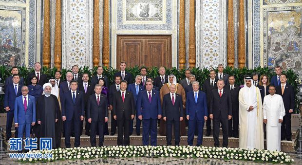6月15日,亚洲相互协作与信任措施会议第五次峰会在塔吉克斯坦首都杜尚别举行。国家主席习近平出席峰会并发表题为《携手开创亚洲安全和发展新局面》的重要讲话。 新华社记者 谢环驰 摄
